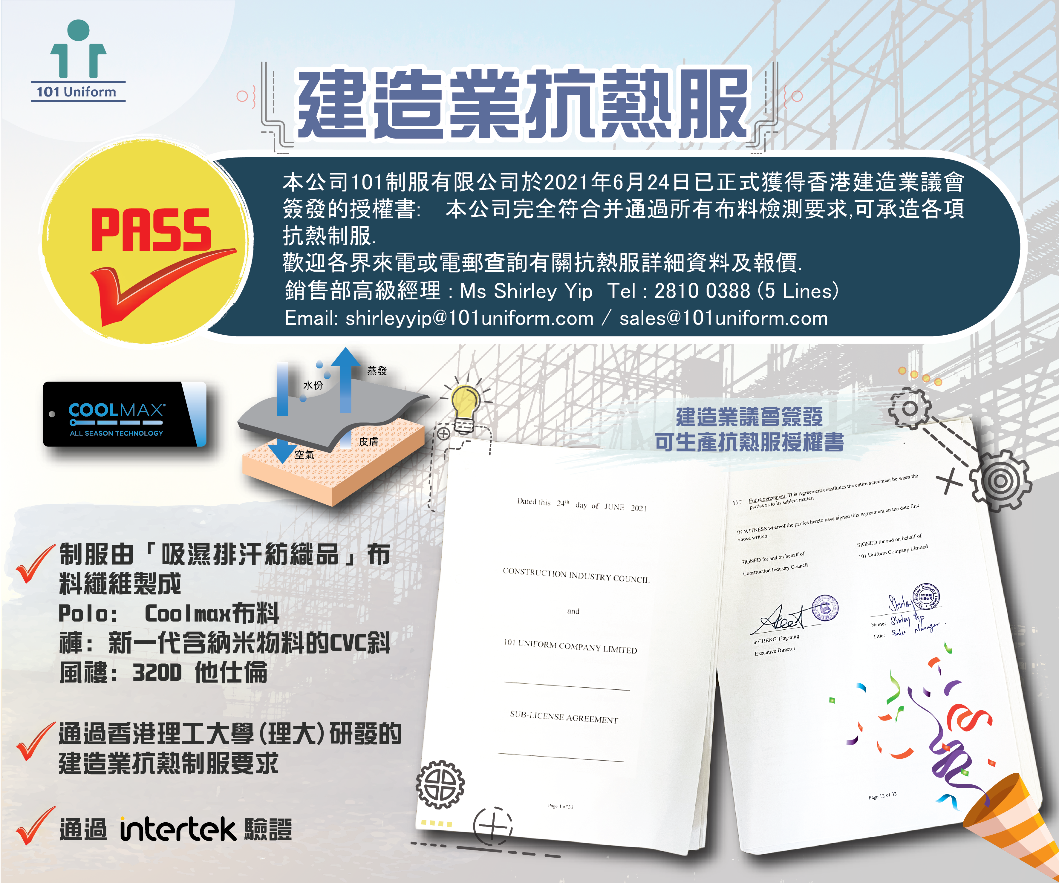 #建造業抗熱服 #AntiHeat #uniform #CIC #PolyUtechnology #訂購 #抗熱Polo #抗熱褲 #吸濕排汗#Coolmax #EN ISO 20471 # 建築制服 #防UV #納米物料 #101 uniform #風褸